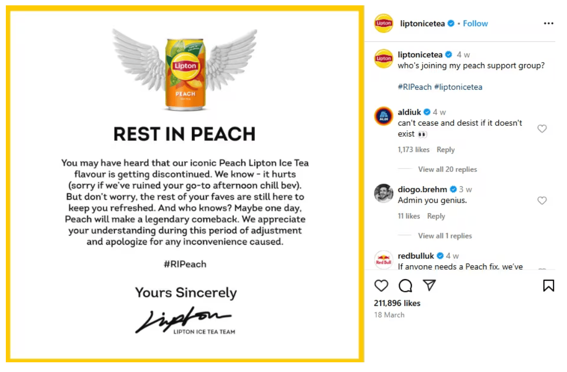 Lipton Ice Tea attempted a similar "discontinuation" stunt just days after Duolingo's success, only to face ridicule and retract within 24 hours.