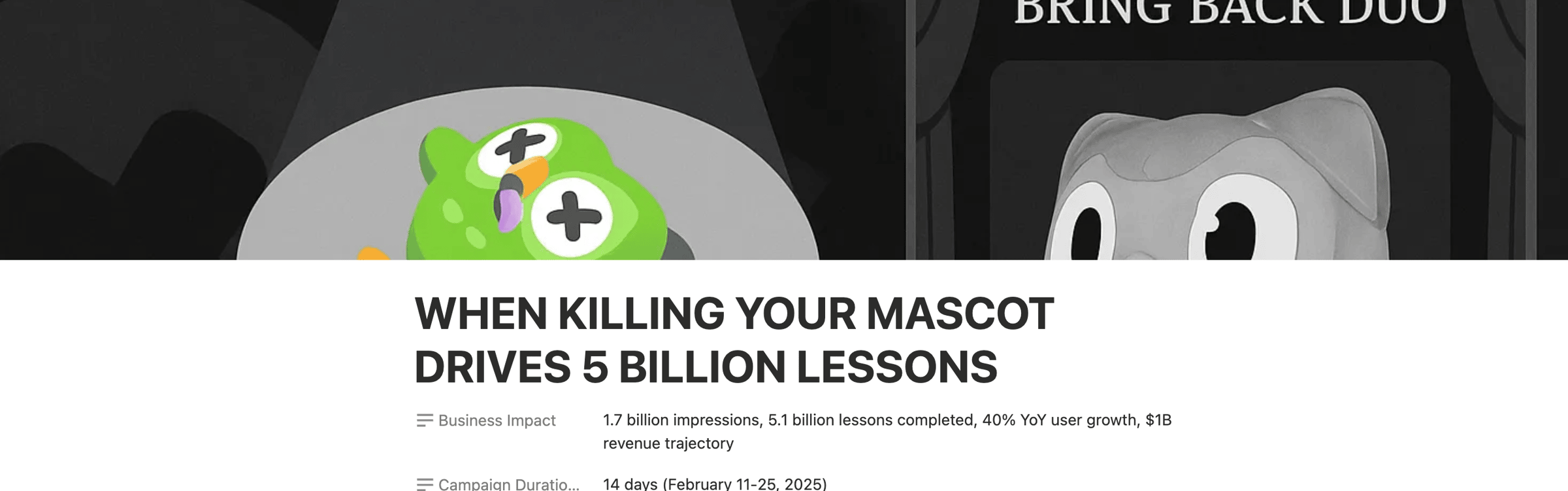 Duolingo held something fictional (a mascot) hostage with clear, achievable goals and perfect brand permission.