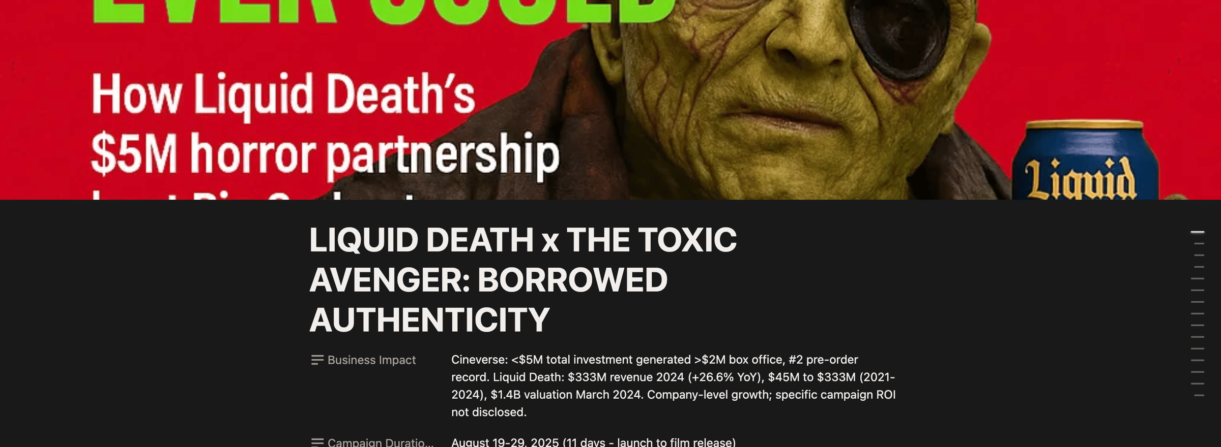 They ran the PSA across digital, social, and Times Square billboards. The distribution hub lived at liquiddeath.com/toxicavenger.