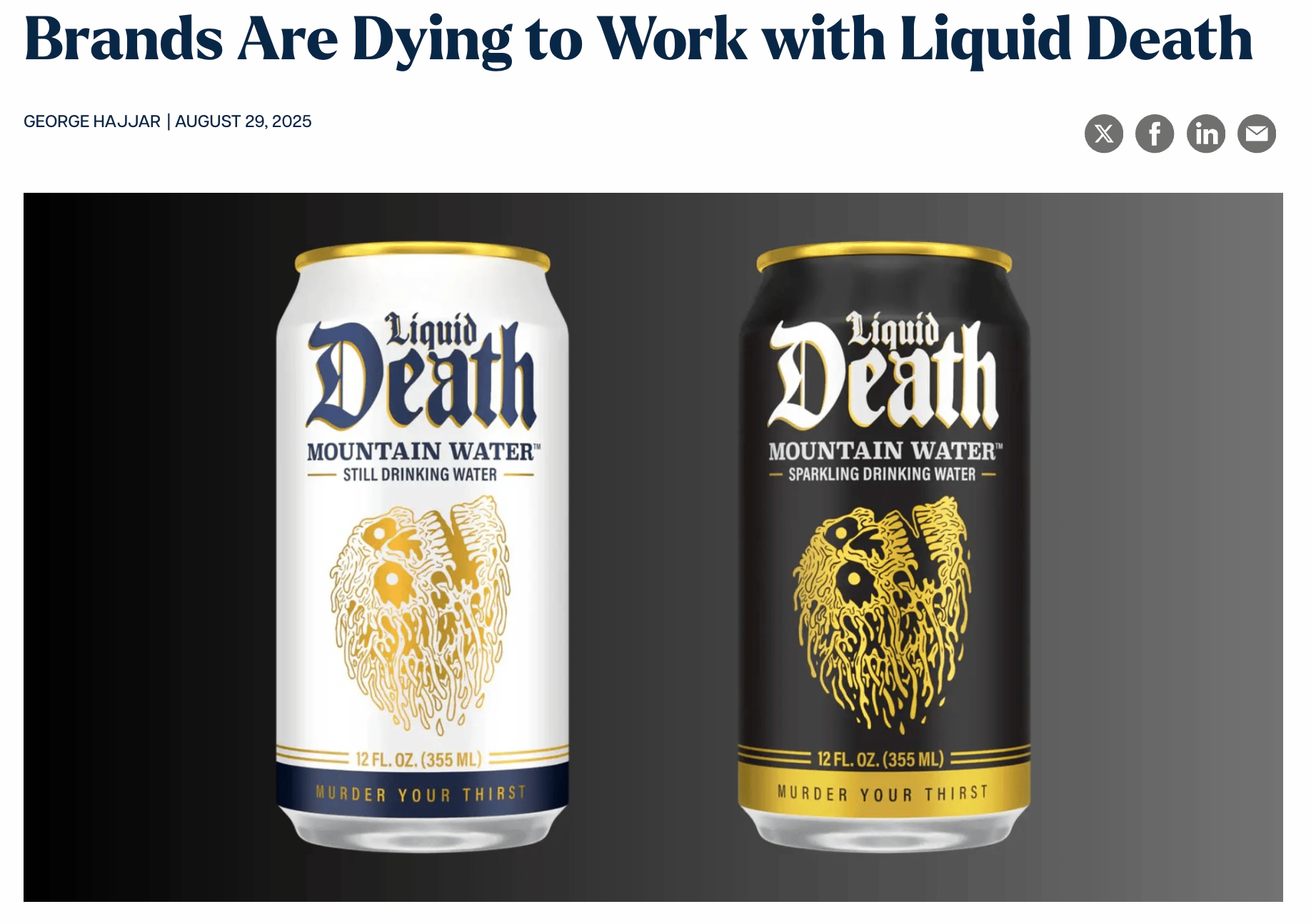 Liquid Death created a moat through irreverence. They own the space where healthy meets rebellious.
