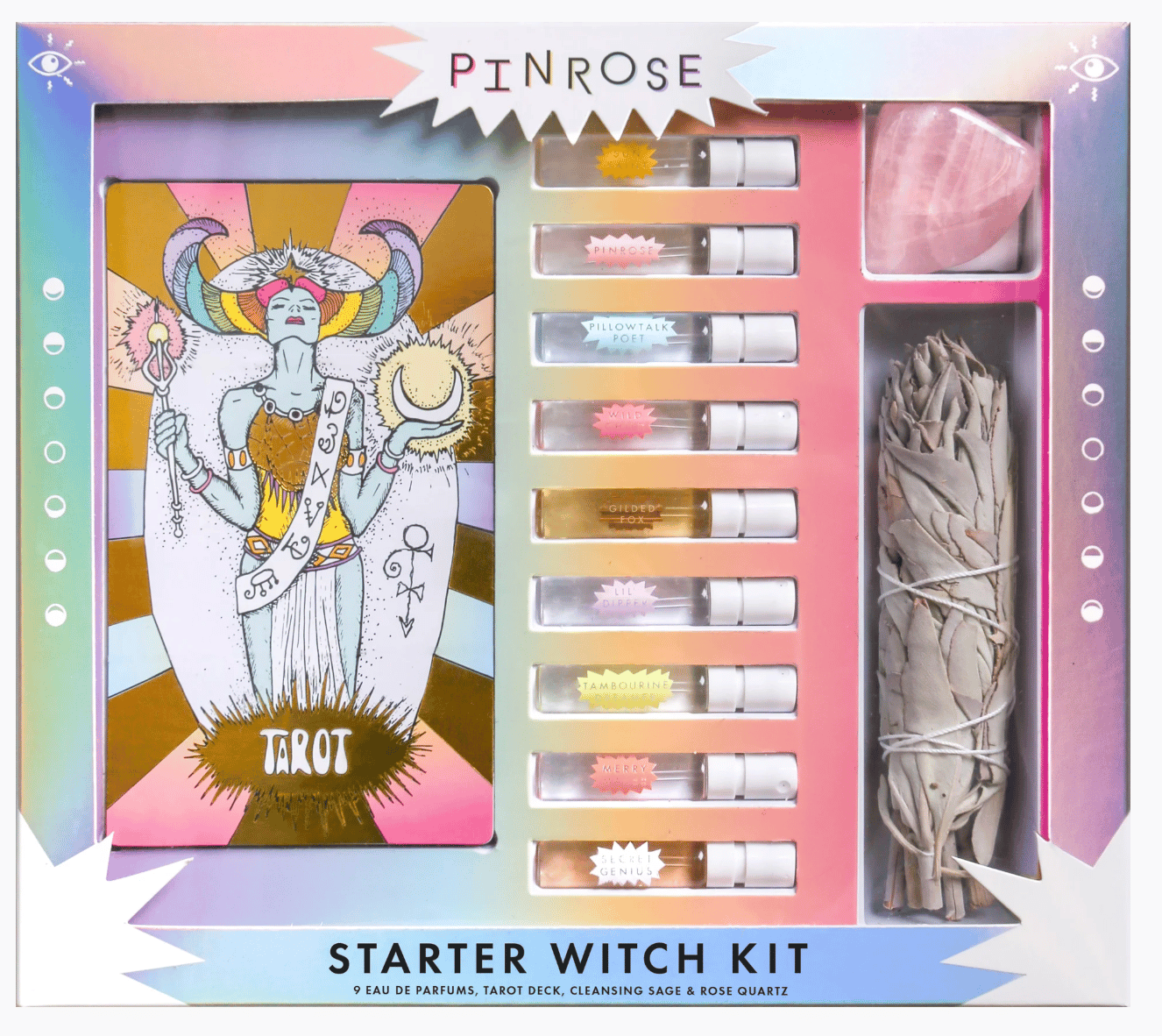 Sephora and fragrance brand Pinrose planned to launch a $42 "Starter Witch Kit" in October 2018, containing tarot cards, white sage, rose quartz, and nine perfume samples.