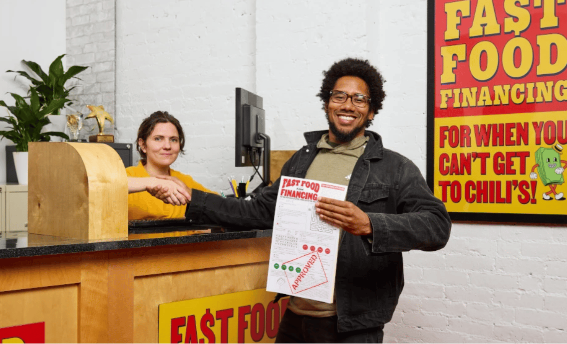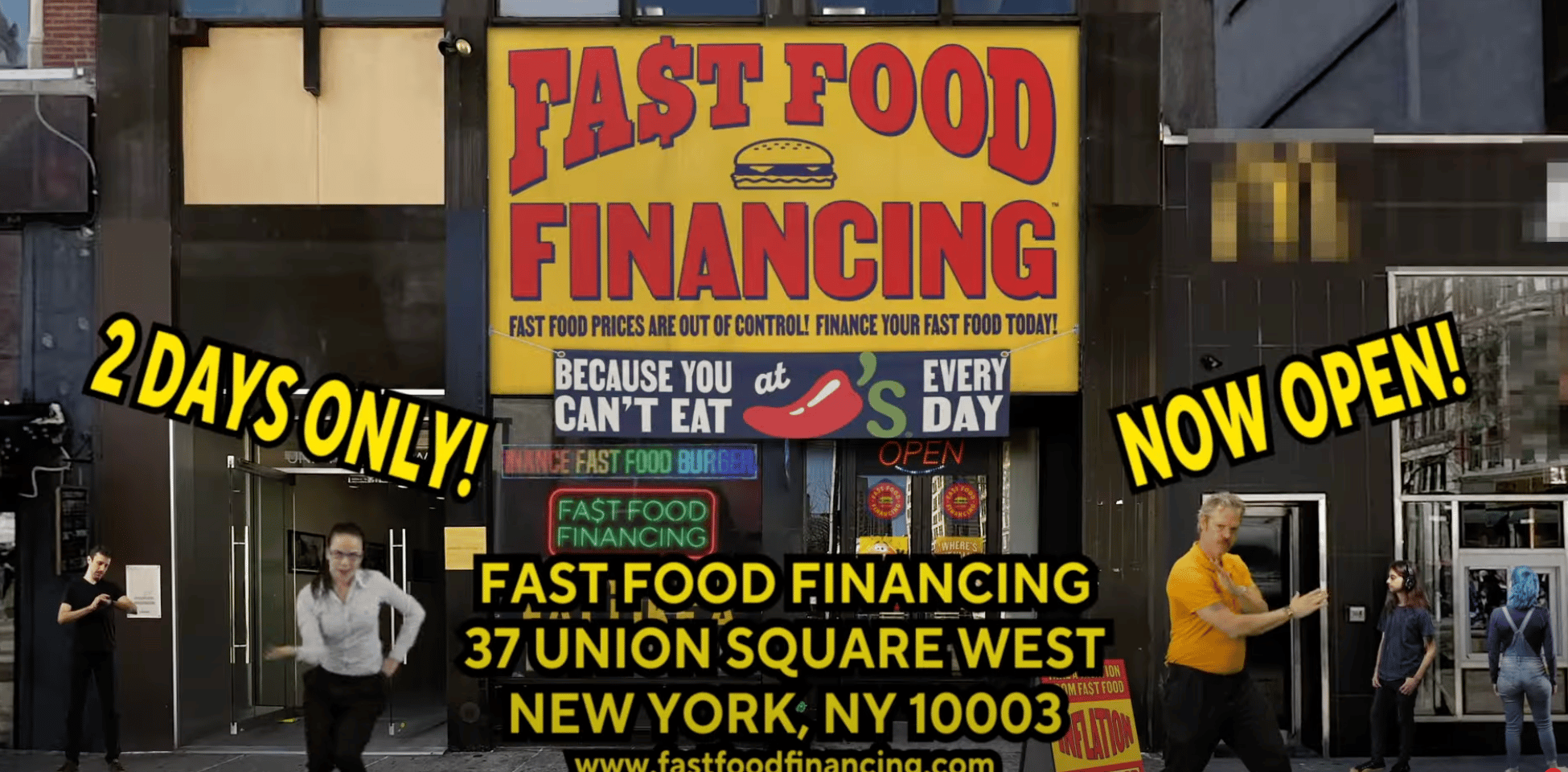 Picture this: A fake payday loan office. Right next to a McDonald's. In freaking Manhattan.