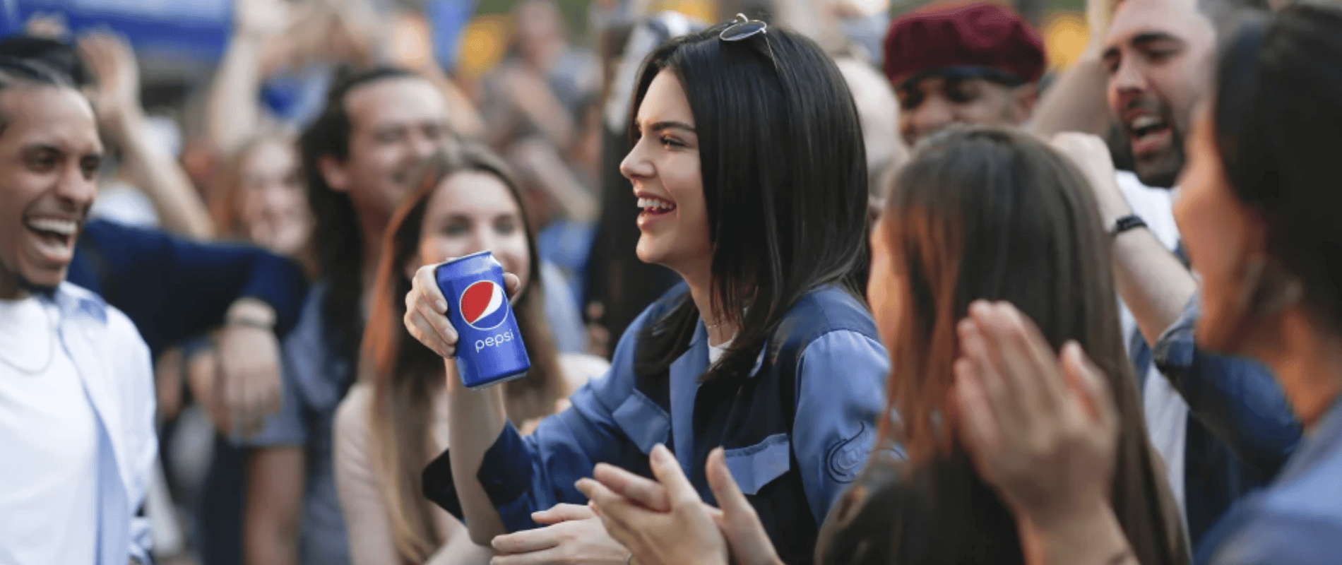 [Image: Kendall Jenner handing a Pepsi to police in the brand's tone-deaf 2017 protest ad that trivialized social justice movements and was pulled within 24 hours. Source: Pepsi via NBC News]